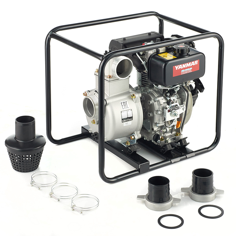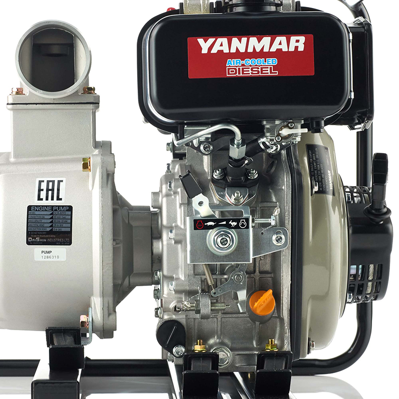 Дизельная мотопомпа Daishin SCR-80YD предназначенная для перекачивания чистой воды с твердыми частицами диаметром до 8 мм, илом и камнями.