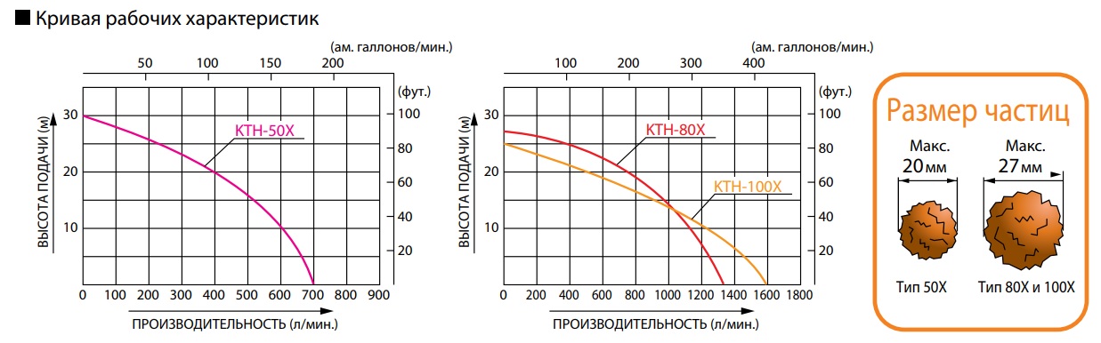 Мотопомпа бензиновая Koshin (Кошин) KTH-50 X (с двигателем Honda / Хонда) – это отличный насос, способный перекачивать даже сильно загрязненную воду с диаметром твердых частиц до 20 мм. При этом скорость перекачивания составляет 700 л в минуту. Этому способствует установленный на бензомотопомпе Koshin KTH50X фирменный японский двигатель Honda мощностью 4 л.с. При этом максимальная высота подъема воды составляет 30 м.