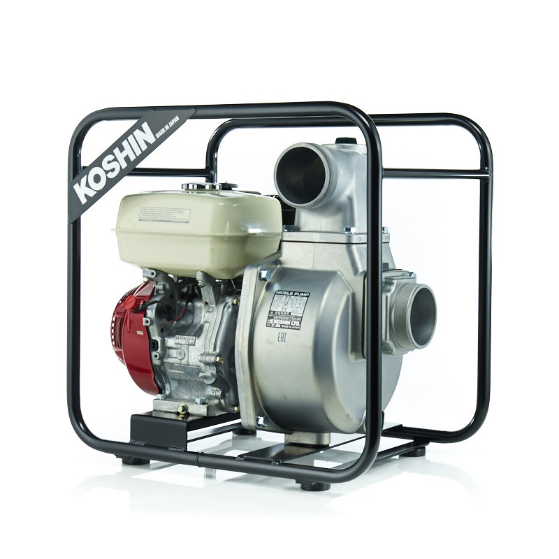 Бензиновая мотопомпа Koshin SEH 100X предназначенная для перекачивания чистой воды с твердыми частицами диаметром до 8 мм, илом и камнями.