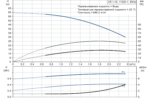 Насос оснащен асинхронным 1-фазным электродвигателем на лапах, с воздушным охлаждением.