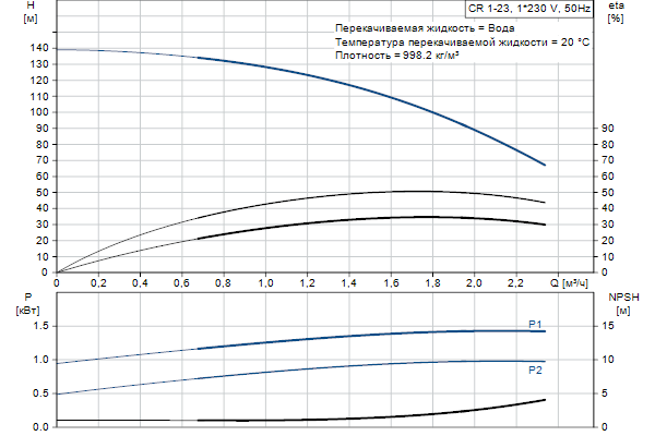 Насос оснащен асинхронным 1-фазным электродвигателем на лапах, с воздушным охлаждением.