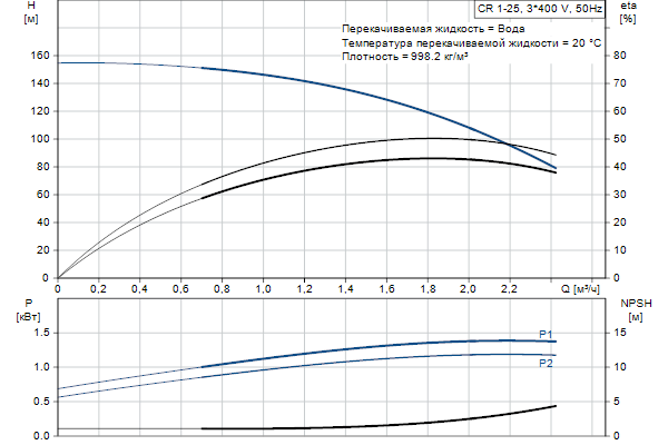 Насос оснащен асинхронным 3-фазным электродвигателем на лапах, с воздушным охлаждением.