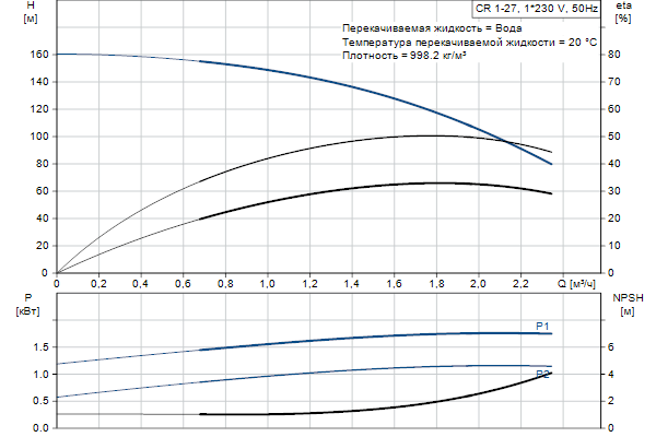 Насос оснащен асинхронным 1-фазным электродвигателем на лапах, с воздушным охлаждением.