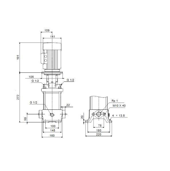 Вертикальный многоступенчатый центробежный насос с всасывающим и напорным патрубками, расположенными на одном уровне ("ин-лайн"), что обеспечивает возможность установки в горизонтальной однотрубной системе. Головная часть и основание насоса из чугуна - все остальные контактирующие с перекачиваемой жидкостью детали из нержавеющей стали. Картриджное уплотнение вала обеспечивает высокую надежность, безопасное использование и легкий доступ для обслуживания. Вращение передается через разъемную муфту. Насос оснащен асинхронным 3-фазным электродвигателем на лапах, с воздушным охлаждением.