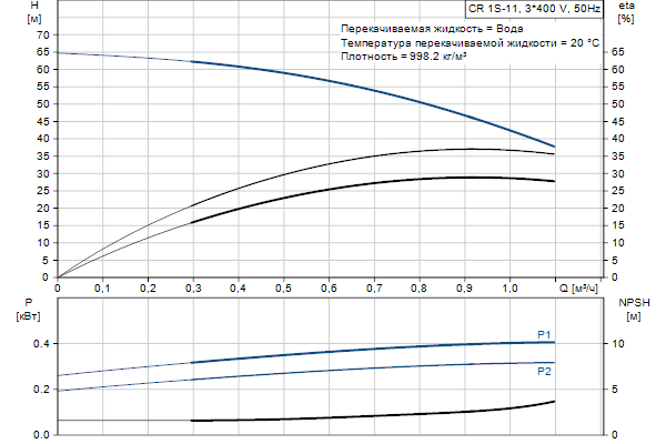 Вертикальный многоступенчатый центробежный насос с всасывающим и напорным патрубками, расположенными на одном уровне ("ин-лайн"), что обеспечивает возможность установки в горизонтальной однотрубной системе. Головная часть и основание насоса из чугуна - все остальные контактирующие с перекачиваемой жидкостью детали из нержавеющей стали. Вращение передается через разъемную муфту. Насос оснащен асинхронным 3-фазным электродвигателем на лапах, с воздушным охлаждением.