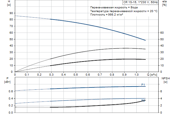 Вертикальный многоступенчатый центробежный насос с всасывающим и напорным патрубками, расположенными на одном уровне ("ин-лайн"), что обеспечивает возможность установки в горизонтальной однотрубной системе. Головная часть и основание насоса из чугуна - все остальные контактирующие с перекачиваемой жидкостью детали из нержавеющей стали. Вращение передается через разъемную муфту. Насос оснащен асинхронным 1-фазным электродвигателем на лапах, с воздушным охлаждением.
