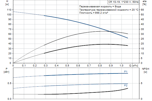 CR 1S-19 A-FGJ-A-E-HQQEВертикальный многоступенчатый центробежный насос с всасывающим и напорным патрубками, расположенными на одном уровне ("ин-лайн"), что обеспечивает возможность установки в горизонтальной однотрубной системе. Головная часть и основание насоса из чугуна - все остальные контактирующие с перекачиваемой жидкостью детали из нержавеющей стали. Вращение передается через разъемную муфту. Соединение трубопровода выполняется с помощью комбинированных фланцев стандартов DIN-ANSI-JIS. Насос оснащен асинхронным 1-фазным электродвигателем на лапах, с воздушным охлаждением.