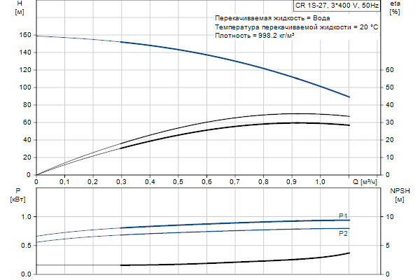 Вертикальный многоступенчатый центробежный насос с всасывающим и напорным патрубками, расположенными на одном уровне ("ин-лайн"), что обеспечивает возможность установки в горизонтальной однотрубной системе. Головная часть и основание насоса из чугуна - все остальные контактирующие с перекачиваемой жидкостью детали из нержавеющей стали. Вращение передается через разъемную муфту. Насос оснащен асинхронным 3-фазным электродвигателем на лапах, с воздушным охлаждением.