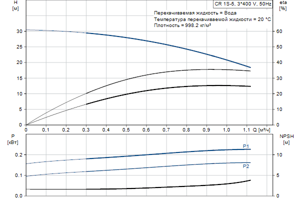 Вертикальный многоступенчатый центробежный насос с всасывающим и напорным патрубками, расположенными на одном уровне ("ин-лайн"), что обеспечивает возможность установки в горизонтальной однотрубной системе. Головная часть и основание насоса из чугуна - все остальные контактирующие с перекачиваемой жидкостью детали из нержавеющей стали. Вращение передается через разъемную муфту. Насос оснащен асинхронным 3-фазным электродвигателем на лапах, с воздушным охлаждением.