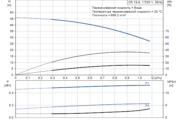 Насос оснащен асинхронным 1-фазным электродвигателем на лапах, с воздушным охлаждением.