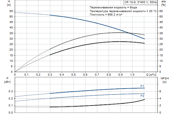Вертикальный многоступенчатый центробежный насос с всасывающим и напорным патрубками, расположенными на одном уровне ("ин-лайн"), что обеспечивает возможность установки в горизонтальной однотрубной системе. Головная часть и основание насоса из чугуна - все остальные контактирующие с перекачиваемой жидкостью детали из нержавеющей стали. Вращение передается через разъемную муфту. Насос оснащен асинхронным 3-фазным электродвигателем на лапах, с воздушным охлаждением.