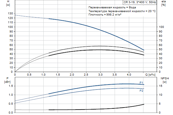 Вертикальный многоступенчатый центробежный насос с всасывающим и напорным патрубками, расположенными на одном уровне ("ин-лайн"), что обеспечивает возможность установки в горизонтальной однотрубной системе. Головная часть и основание насоса из чугуна - все остальные контактирующие с перекачиваемой жидкостью детали из нержавеющей стали. Картриджное уплотнение вала обеспечивает высокую надежность, безопасное использование и легкий доступ для обслуживания. Вращение передается через разъемную муфту. Насос оснащен асинхронным 3-фазным электродвигателем на лапах, с воздушным охлаждением.