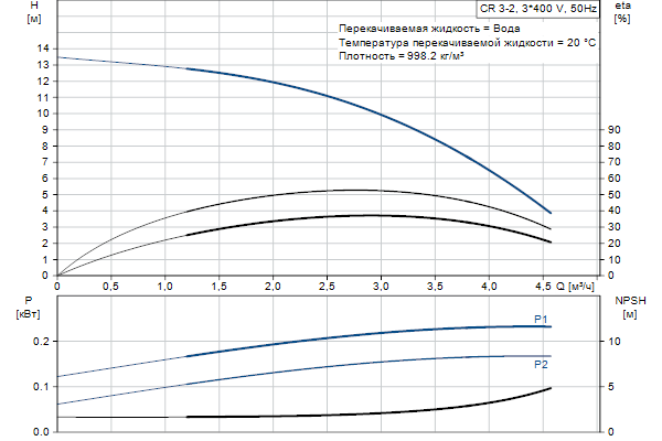 Насос оснащен асинхронным 3-фазным электродвигателем на лапах, с воздушным охлаждением.