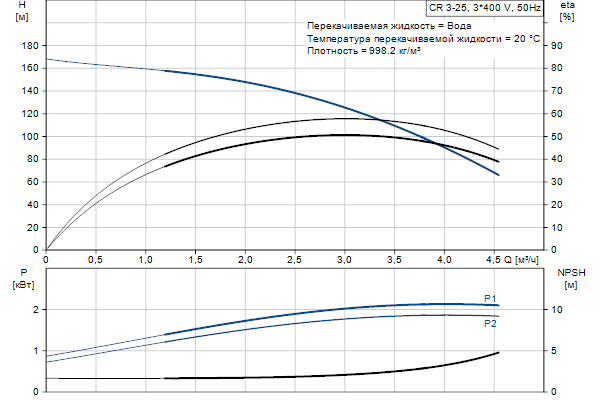 Насос оснащен асинхронным 3-фазным электродвигателем на лапах, с воздушным охлаждением.