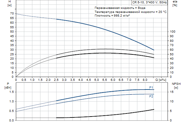 Вертикальный многоступенчатый центробежный насос с всасывающим и напорным патрубками, расположенными на одном уровне ("ин-лайн"), что обеспечивает возможность установки в горизонтальной однотрубной системе. Головная часть и основание насоса из чугуна - все остальные контактирующие с перекачиваемой жидкостью детали из нержавеющей стали. Картриджное уплотнение вала обеспечивает высокую надежность, безопасное использование и легкий доступ для обслуживания. Вращение передается через разъемную муфту. Насос оснащен асинхронным 3-фазным электродвигателем на лапах, с воздушным охлаждением.