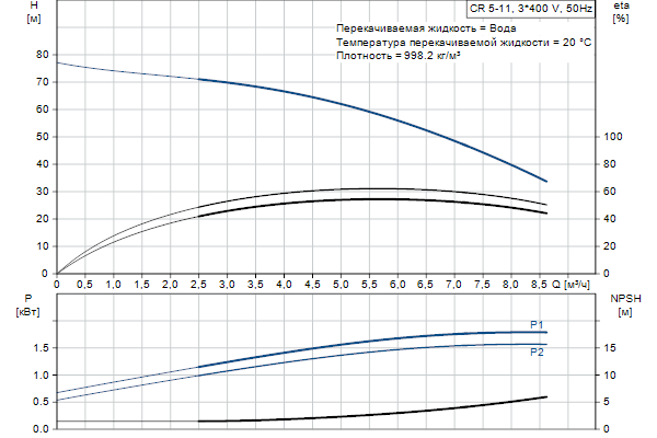 Насос оснащен асинхронным 3-фазным электродвигателем на лапах, с воздушным охлаждением.