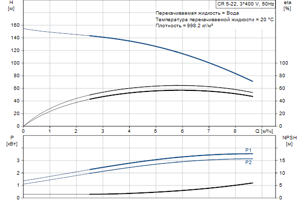 Насос оснащен асинхронным 3-фазным электродвигателем на лапах, с воздушным охлаждением.