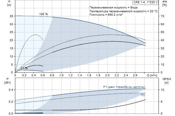 Вертикальный многоступенчатый центробежный насос с всасывающим и напорным патрубками, расположенными на одном уровне ("ин-лайн"), что обеспечивает возможность установки в горизонтальной однотрубной системе. Головная часть и основание насоса из чугуна - все остальные контактирующие с перекачиваемой жидкостью детали из нержавеющей стали. Картриджное уплотнение вала обеспечивает высокую надежность, безопасное использование и легкий доступ для обслуживания. Вращение передается через разъемную муфту. Насос оснащен синхронным 1-фазным электродвигателем на постоянных магнитах с воздушным охлаждением. КПД электродвигателя классифицируется как IE5 в соответствии со стандартом IEC 60034-30-2.