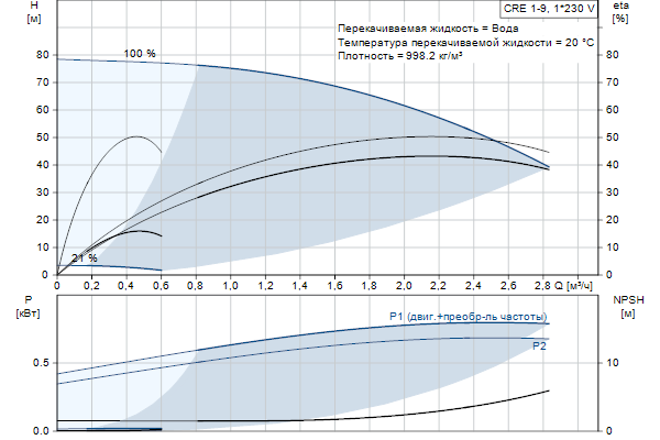 Вертикальный многоступенчатый центробежный насос с всасывающим и напорным патрубками, расположенными на одном уровне ("ин-лайн"), что обеспечивает возможность установки в горизонтальной однотрубной системе. Головная часть и основание насоса из чугуна - все остальные контактирующие с перекачиваемой жидкостью детали из нержавеющей стали. Картриджное уплотнение вала обеспечивает высокую надежность, безопасное использование и легкий доступ для обслуживания. Вращение передается через разъемную муфту. Насос оснащен синхронным 1-фазным электродвигателем на постоянных магнитах с воздушным охлаждением. КПД электродвигателя классифицируется как IE5 в соответствии со стандартом IEC 60034-30-2.