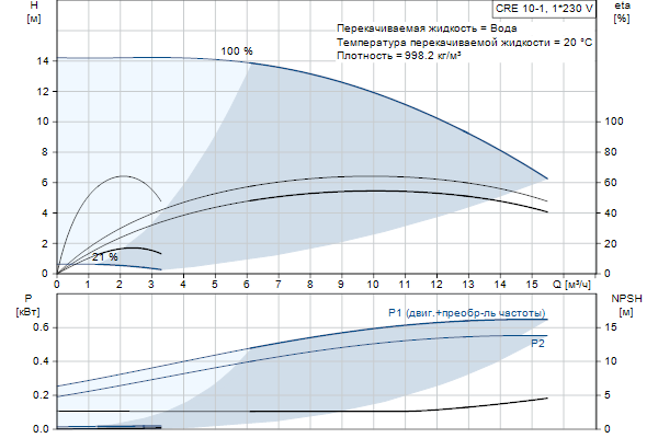 Вертикальный многоступенчатый центробежный насос с всасывающим и напорным патрубками, расположенными на одном уровне ("ин-лайн"), что обеспечивает возможность установки в горизонтальной однотрубной системе. Головная часть и основание насоса из чугуна - все остальные контактирующие с перекачиваемой жидкостью детали из нержавеющей стали. Картриджное уплотнение вала обеспечивает высокую надежность, безопасное использование и легкий доступ для обслуживания. Вращение передается через разъемную муфту. Насос оснащен синхронным 1-фазным электродвигателем на постоянных магнитах с воздушным охлаждением. КПД электродвигателя классифицируется как IE5 в соответствии со стандартом IEC 60034-30-2.