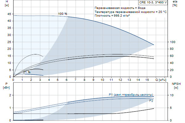 Вертикальный многоступенчатый центробежный насос с всасывающим и напорным патрубками, расположенными на одном уровне ("ин-лайн"), что обеспечивает возможность установки в горизонтальной однотрубной системе. Головная часть и основание насоса из чугуна - все остальные контактирующие с перекачиваемой жидкостью детали из нержавеющей стали. Картриджное уплотнение вала обеспечивает высокую надежность, безопасное использование и легкий доступ для обслуживания. Вращение передается через разъемную муфту. Насос оснащен синхронным 3-фазным электродвигателем на постоянных магнитах с воздушным охлаждением. КПД электродвигателя классифицируется как IE5 в соответствии со стандартом IEC 60034-30-2.