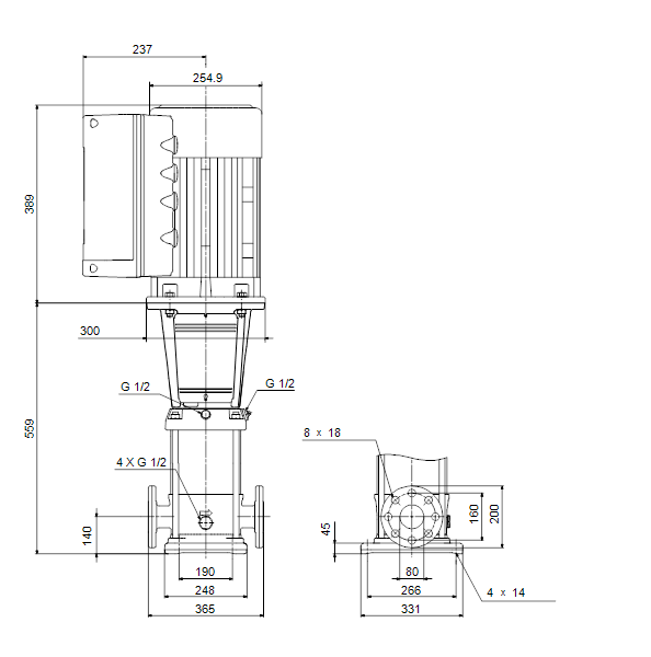 Вертикальный многоступенчатый центробежный насос с всасывающим и напорным патрубками, расположенными на одном уровне ("ин-лайн"), что обеспечивает возможность установки в горизонтальной однотрубной системе. Головная часть и основание насоса из чугуна - все остальные контактирующие с перекачиваемой жидкостью детали из нержавеющей стали. Картриджное уплотнение вала обеспечивает высокую надежность, безопасное использование и легкий доступ для обслуживания. Вращение передается через разъемную муфту. Соединение трубопровода выполняется с помощью фланцев стандарта DIN.