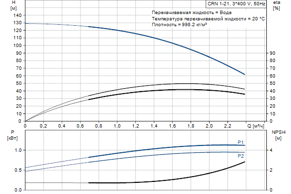 Вертикальный многоступенчатый центробежный насос с одинаковым уровнем расположения портов всасывания и нагнетания. Насосная часть и плита-основание сделаны из чугуна, остальные проточные части - из нержавеющей стали (EN 1.4301)