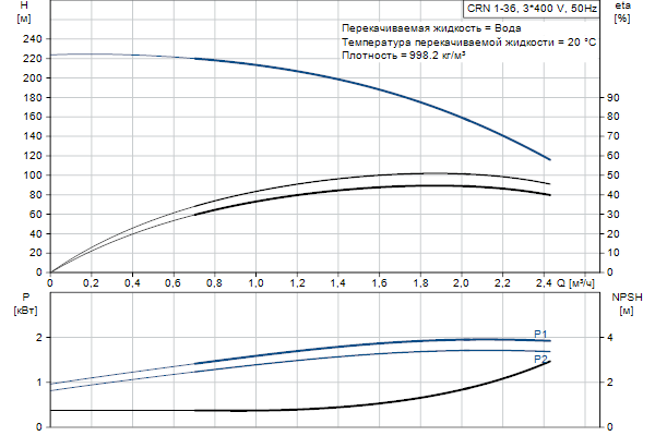Вертикальный многоступенчатый центробежный насос с одинаковым уровнем расположения портов всасывания и нагнетания. Насосная часть и плита-основание сделаны из чугуна, остальные проточные части - из нержавеющей стали (EN 1.4301)