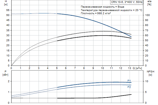 Насос оснащен асинхронным 3-фазным электродвигателем на лапах, с воздушным охлаждением.