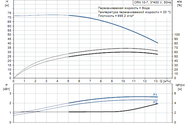 Насос оснащен асинхронным 3-фазным электродвигателем на лапах, с воздушным охлаждением.