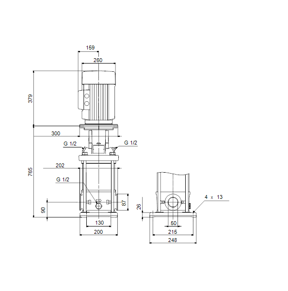 Вертикальные многоступенчатые центробежные насосы с одинаковым уровнем расположения портов всасывания и нагнетания. Насосная голова и плита-основание сделаны из чугуна, остальные проточные части- из нержавеющей стали (EN 1.4301)