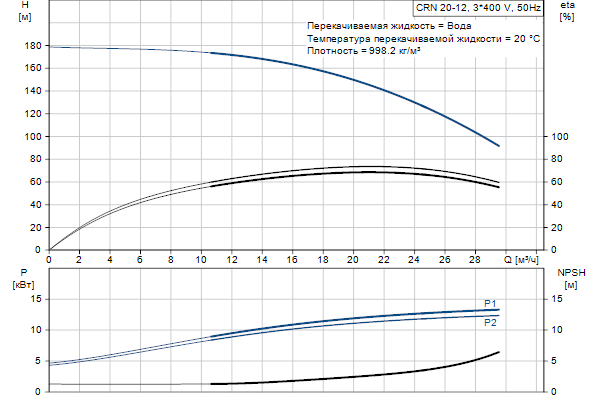 Насос оснащен асинхронным 3-фазным электродвигателем на лапах, с воздушным охлаждением.