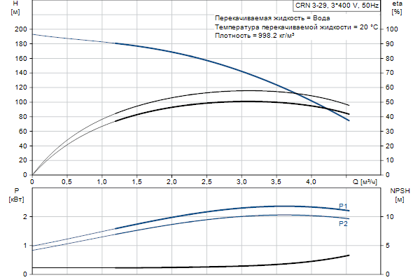 Вертикальный многоступенчатый центробежный насос с одинаковым уровнем расположения портов всасывания и нагнетания. Насосная часть и плита-основание сделаны из чугуна, остальные проточные части - из нержавеющей стали (EN 1.4301)
