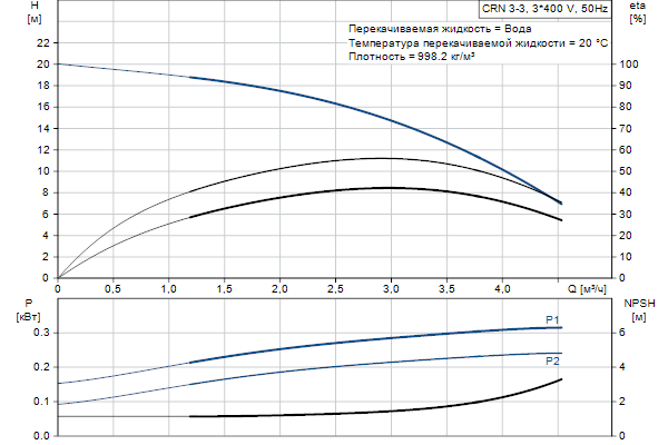 Вертикальный многоступенчатый центробежный насос с одинаковым уровнем расположения портов всасывания и нагнетания. Насосная часть и плита-основание сделаны из чугуна, остальные проточные части - из нержавеющей стали (EN 1.4301)
