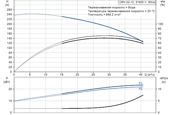 Насос оснащен асинхронным 3-фазным электродвигателем на лапах, с воздушным охлаждением.
