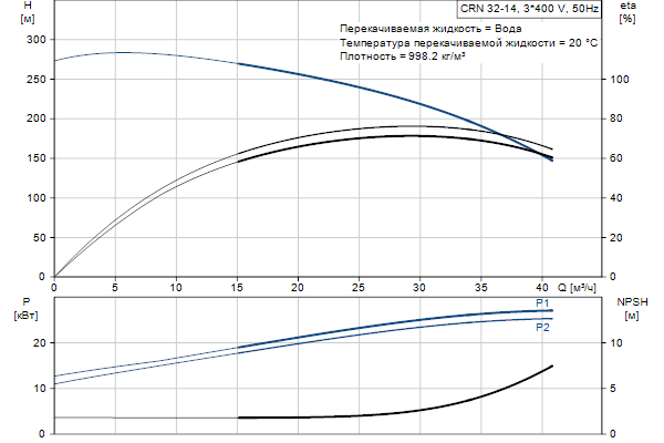 Насос оснащен асинхронным 3-фазным электродвигателем на лапах, с воздушным охлаждением.