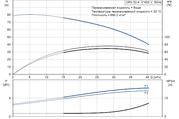 Насос оснащен асинхронным 3-фазным электродвигателем на лапах, с воздушным охлаждением.
