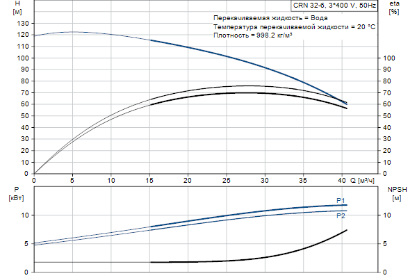 Насос оснащен асинхронным 3-фазным электродвигателем на лапах, с воздушным охлаждением.