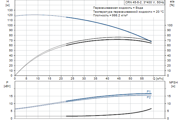 Насос оснащен асинхронным 3-фазным электродвигателем на лапах, с воздушным охлаждением.