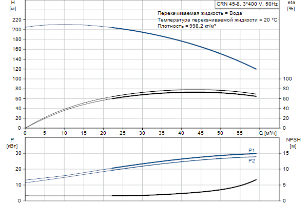 Насос оснащен асинхронным 3-фазным электродвигателем на лапах, с воздушным охлаждением.