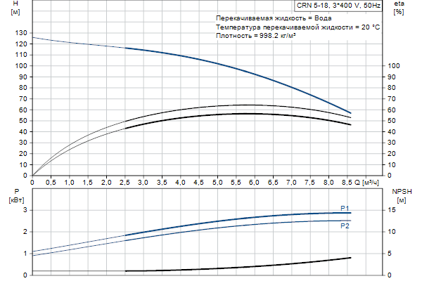 Вертикальные многоступенчатые центробежные насосы с одинаковым уровнем расположения портов всасывания и нагнетания. Насосная голова и плита-основание сделаны из чугуна, остальные проточные части- из нержавеющей стали (EN 1.4301)
