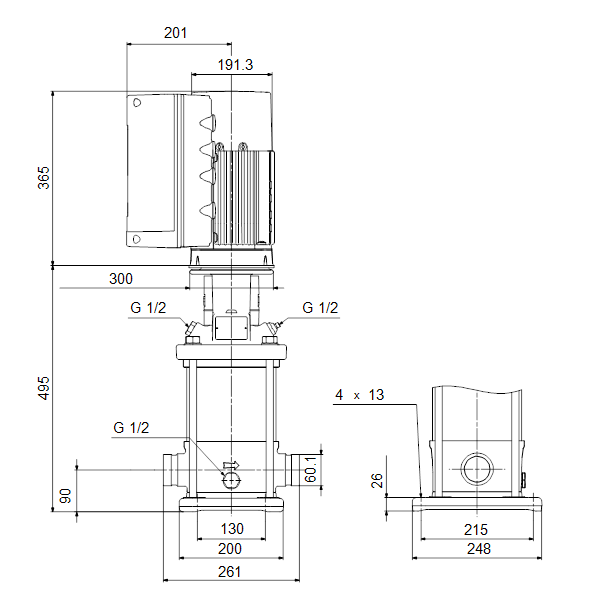 Вертикальный многоступенчатый центробежный насос с всасывающим и напорным патрубками, расположенными на одном уровне ("ин-лайн"), что обеспечивает возможность установки в горизонтальной однотрубной системе. Части насоса, контактирующие с жидкостью, выполнены из высококачественной нержавеющей стали. Картриджное уплотнение вала обеспечивает высокую надежность, безопасное использование и легкий доступ для обслуживания. Вращение передается через разъемную муфту. Соединение трубопровода выполняется с помощью муфт PJE (Victaulic®).