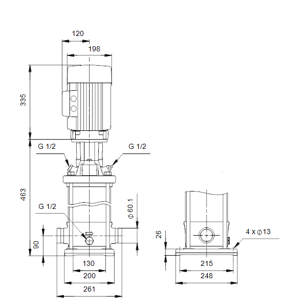 CRT 16-3 A-P-A-E-AUUE Вертикальный многоступенчатый центробежный насос с нормальным всасыванием типа