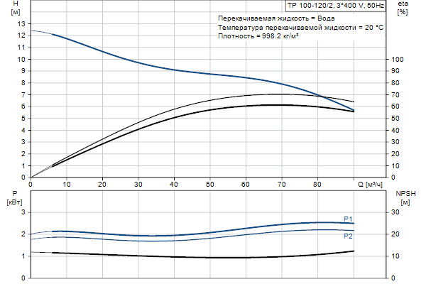 Одноступенчатый, без соединительной муфты, центробежный с всасывающим и выпускным патрубками на одной линии. Насос имеет конструкцию извлечения сверху, т.е. головную часть (электродвигатель, голову насоса и рабочее колесо) можно демонтировать для обслуживания или ремонта в то время, как корпус насоса остается на трубопроводе.