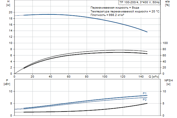 Одноступенчатый, без соединительной муфты, центробежный с всасывающим и выпускным патрубками на одной линии. Насос имеет конструкцию извлечения сверху, т.е. головную часть (электродвигатель, голову насоса и рабочее колесо) можно демонтировать для обслуживания или ремонта в то время, как корпус насоса остается на трубопроводе.