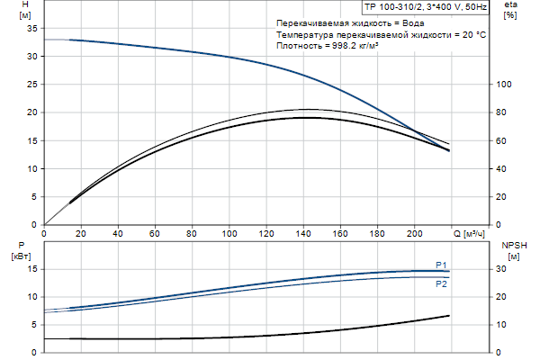 Одноступенчатый, без соединительной муфты, центробежный с всасывающим и выпускным патрубками на одной линии. Насос имеет конструкцию извлечения сверху, т.е. головную часть (электродвигатель, голову насоса и рабочее колесо) можно демонтировать для обслуживания или ремонта в то время, как корпус насоса остается на трубопроводе.