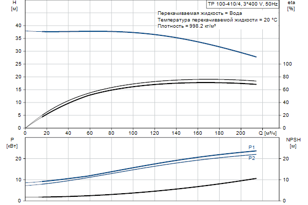Одноступенчатый, без соединительной муфты, центробежный с всасывающим и выпускным патрубками на одной линии. Насос имеет конструкцию извлечения сверху, т.е. головную часть (электродвигатель, голову насоса и рабочее колесо) можно демонтировать для обслуживания или ремонта в то время, как корпус насоса остается на трубопроводе.