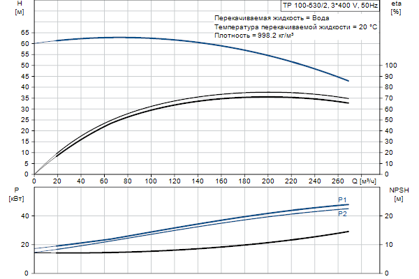 Одноступенчатый, без соединительной муфты, центробежный с всасывающим и выпускным патрубками на одной линии. Насос имеет конструкцию извлечения сверху, т.е. головную часть (электродвигатель, голову насоса и рабочее колесо) можно демонтировать для обслуживания или ремонта в то время, как корпус насоса остается на трубопроводе.