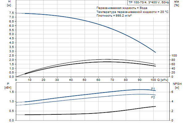 Одноступенчатый, без соединительной муфты, центробежный с всасывающим и выпускным патрубками на одной линии. Насос имеет конструкцию извлечения сверху, т.е. головную часть (электродвигатель, голову насоса и рабочее колесо) можно демонтировать для обслуживания или ремонта в то время, как корпус насоса остается на трубопроводе.