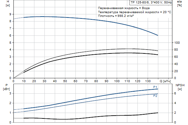 Одноступенчатый, без соединительной муфты, центробежный с всасывающим и выпускным патрубками на одной линии. Насос имеет конструкцию извлечения сверху, т.е. головную часть (электродвигатель, голову насоса и рабочее колесо) можно демонтировать для обслуживания или ремонта в то время, как корпус насоса остается на трубопроводе.